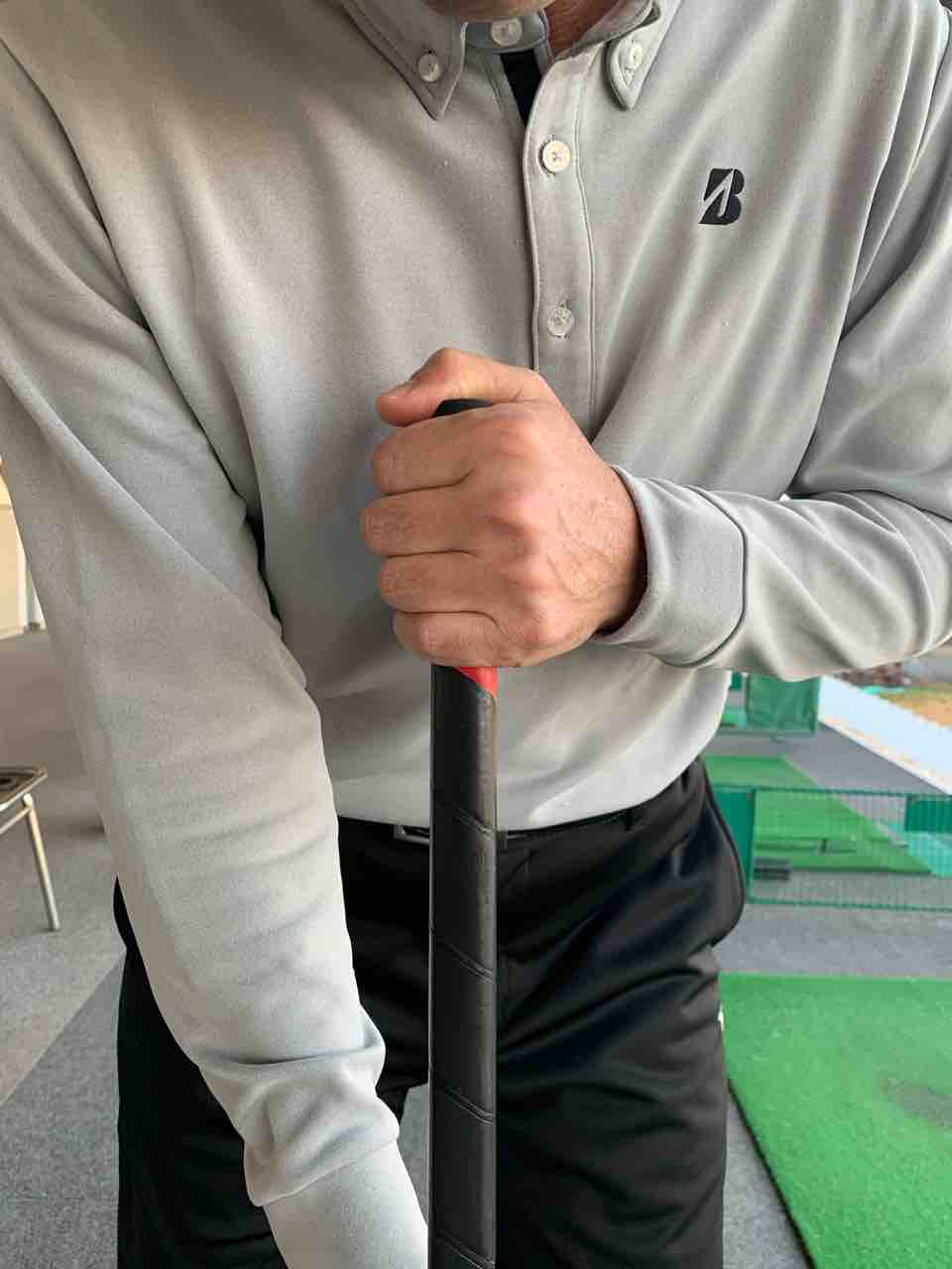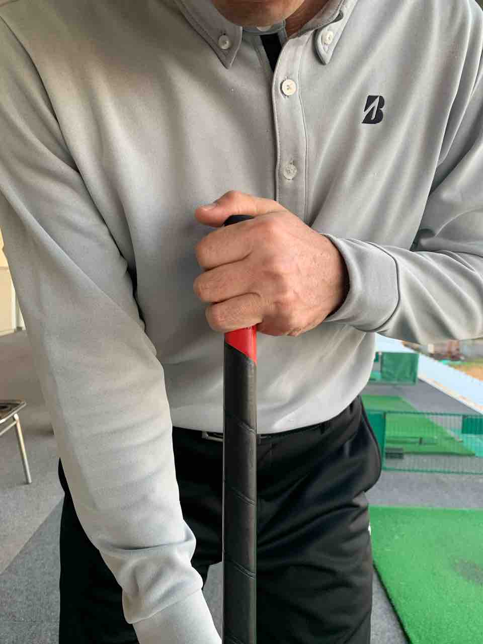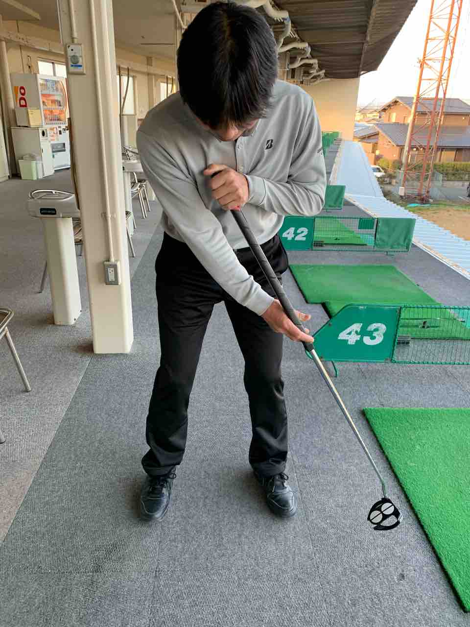 バックスイングの時もフォローもこの関係が変わらないように使います。